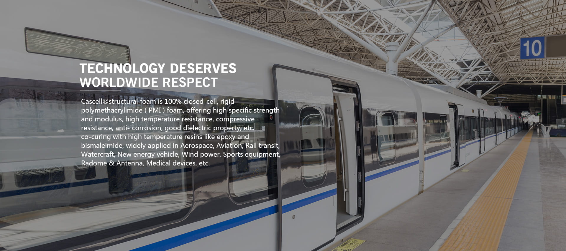 Selepas rawatan suhu tinggi yang betul, buih PMI boleh menahan keperluan proses pengawetan bahan komposit suhu tinggi, yang menjadikan buih PMI digunakan secara meluas dalam bidang penerbangan. Buih PMI ketumpatan sederhana mempunyai sifat rayapan mampatan yang baik dan boleh disembuhkan dengan autoklaf pada suhu 120oC-180oC dan tekanan 0.3-0.5MPa. Buih PMI boleh memenuhi keperluan prestasi rayapan proses pengawetan prepreg biasa, dan boleh mencapai pengawetan bersama struktur sandwic.